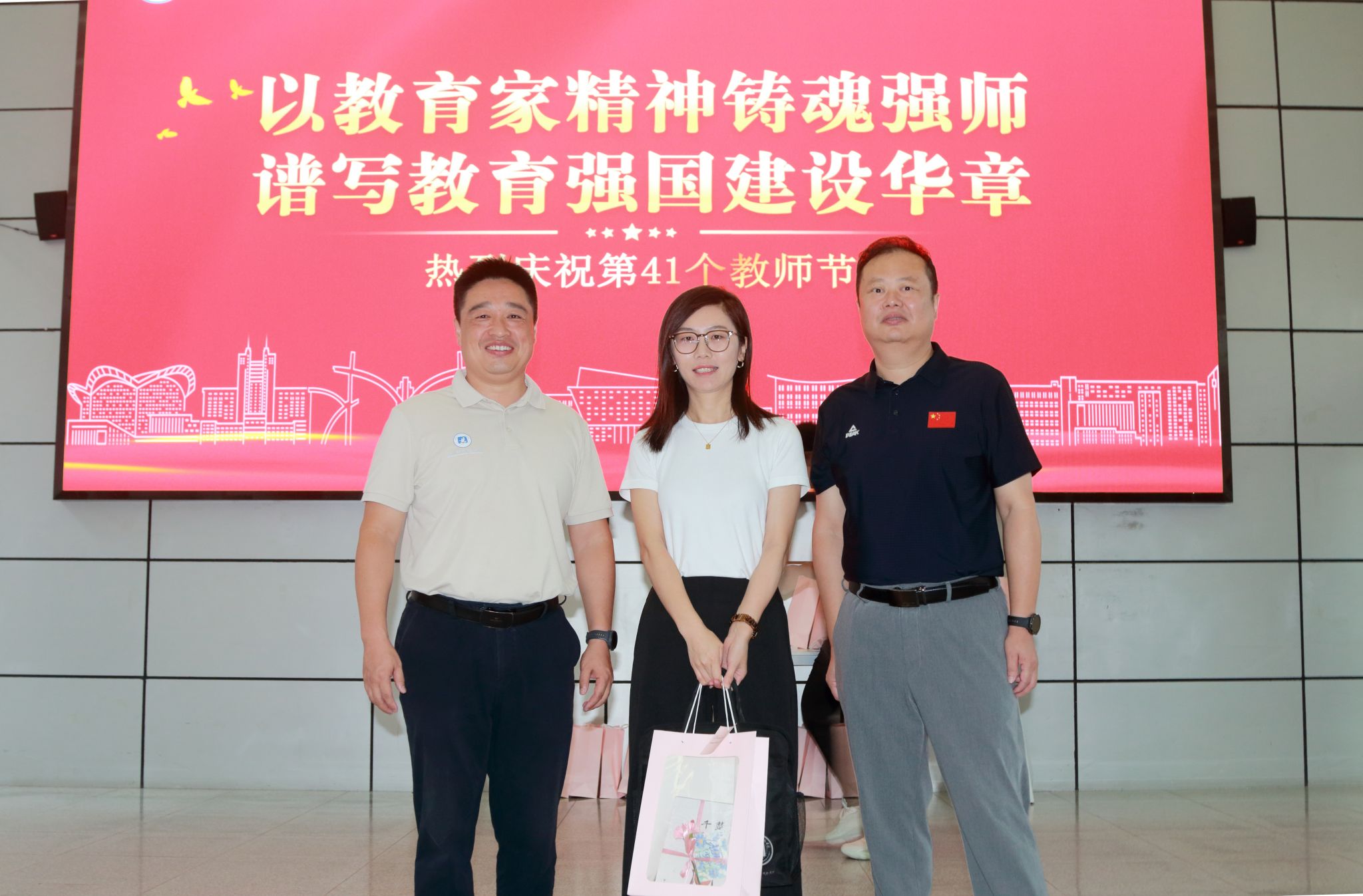 9月10日,正值第41个教师节,校领导张辉、陈友华、蒋成、郭勇深入一线慰问教师,在科技楼和同大综合楼等地给教师们送去了鲜花和书籍。